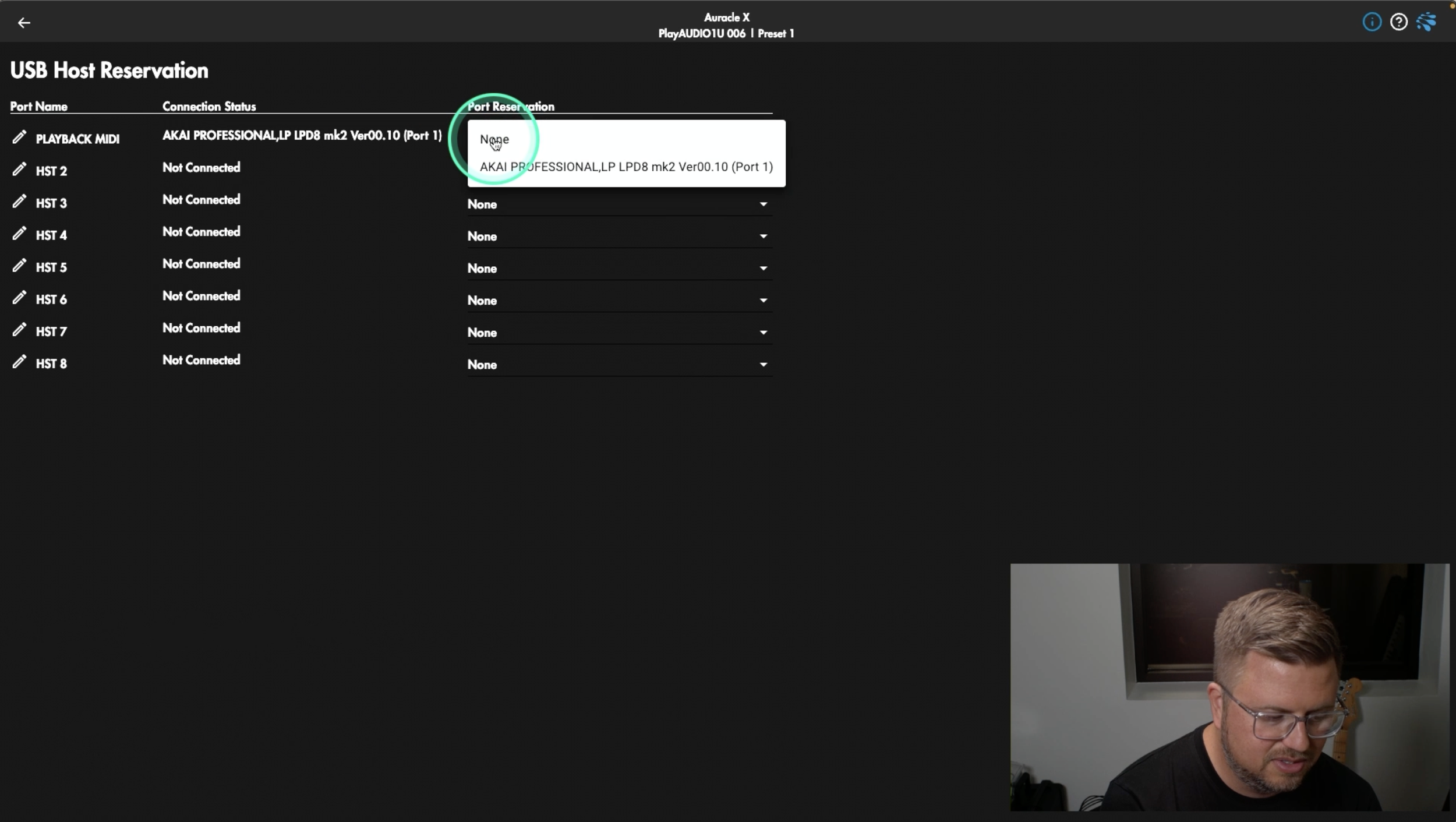For this tutorial we’ll be working with a PlayAUDIO1U, but just like so many other features of Auracle X, the display will look nearly identical no matter which device you choose. The only difference of note is the number of USB Host Reservations that are available to us.
